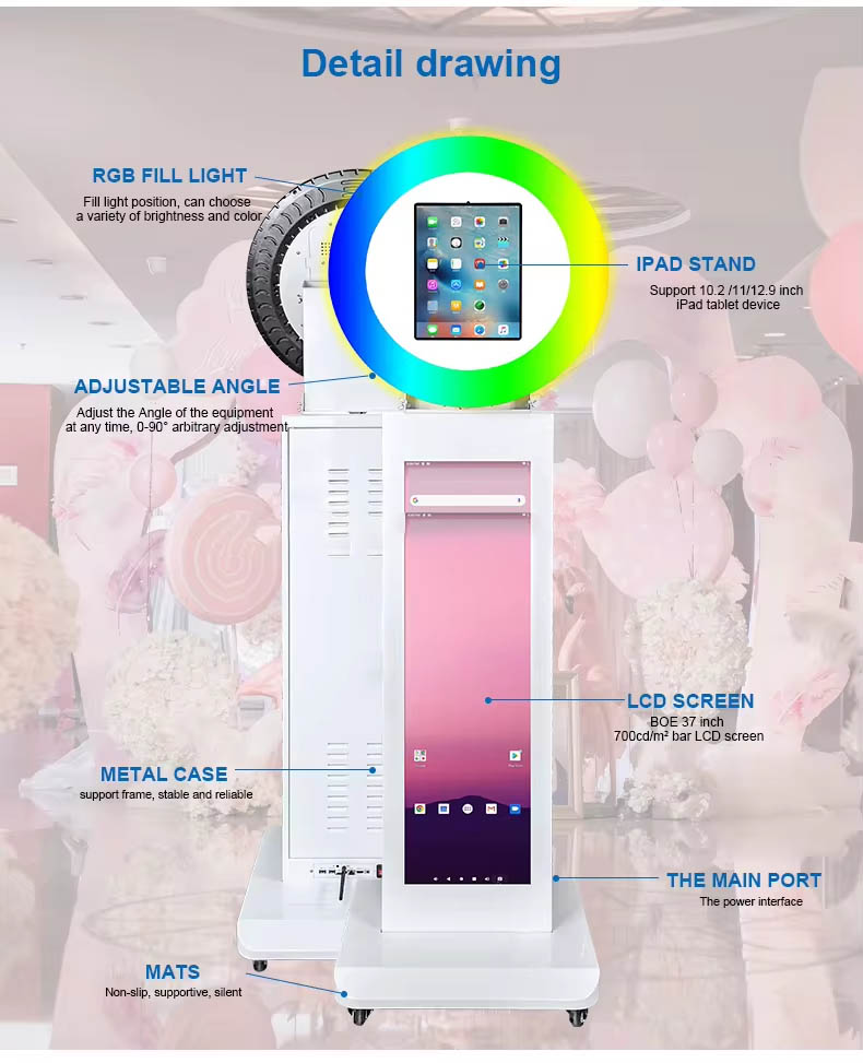 Open Air Wedding Photos Automatic Display Machine Portable Selfie Ipad Photo Booth Kiosk Photobooth Shell